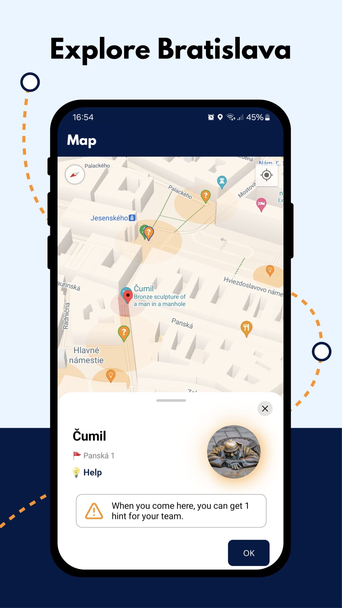 - We recommend that you agree at the beginning which team will go to which part of the Bratislava city center.