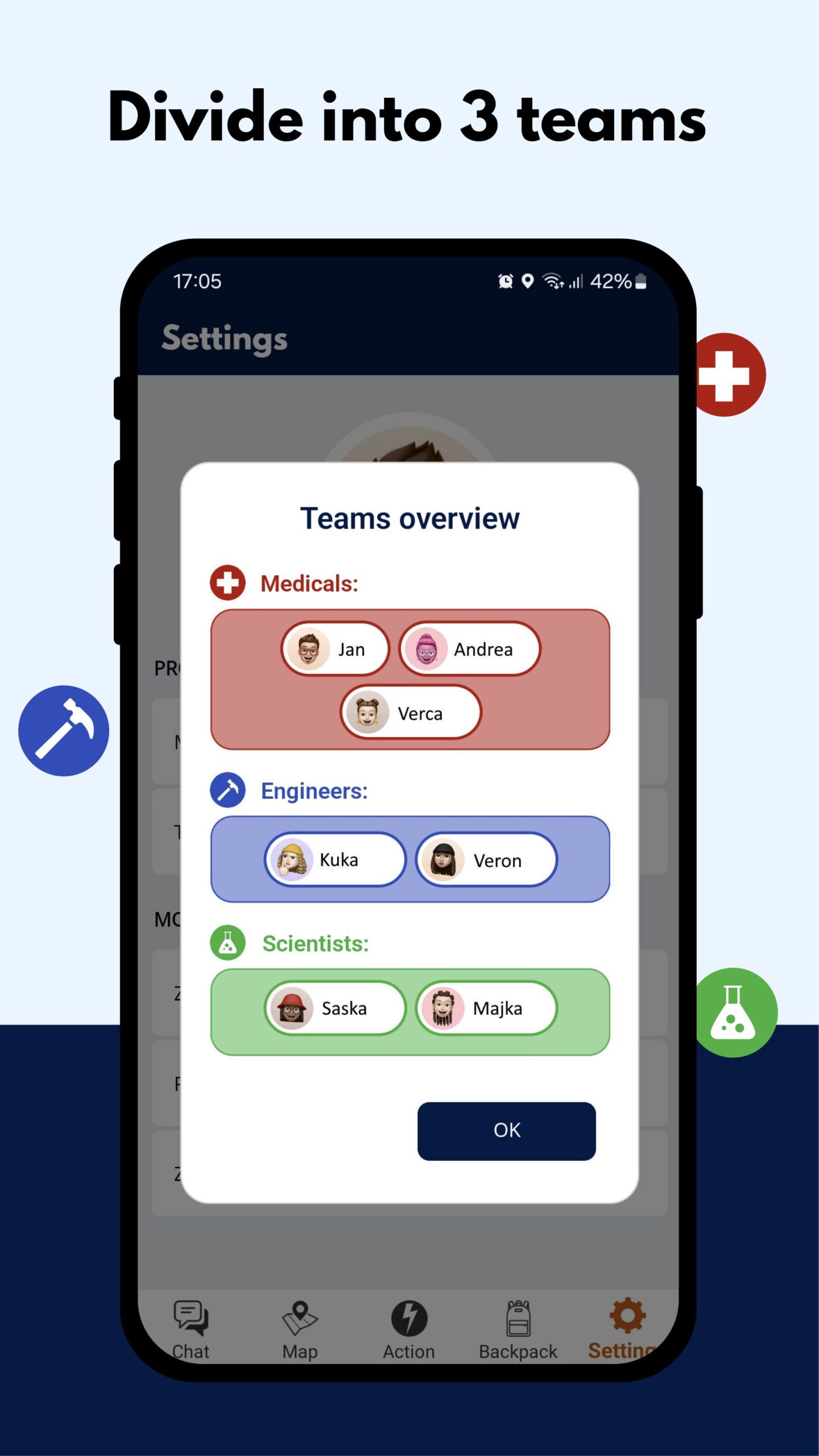 - If there are at least 6 of you, at the beginning of the game you will be divided into three teams - each must have at least 2 players